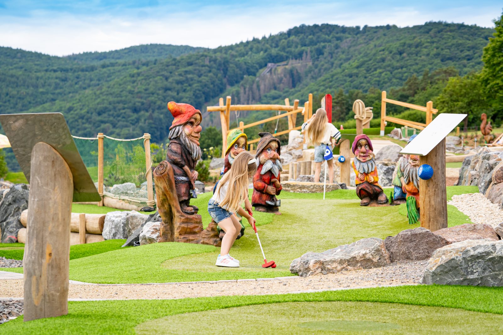 Im Adventure Golf Park am Edersee erwartet euch ein unterhaltsames Freizeiterlebnis für jedes Alter. Die kreativ gestalteten Bahnen sorgen für Abwechslung, Spaß und kleine Herausforderungen. Inmitten der schönen Natur rund um den Edersee könnt ihr hier gemeinsam eine entspannte Zeit verbringen und spielerisch gegeneinander antreten
