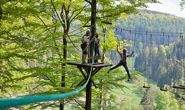 Der Kletterwald am Edersee bietet ein spannendes Abenteuer mitten in der Natur. In verschiedenen Parcours mit unterschiedlichen Schwierigkeitsgraden klettert ihr von Baum zu Baum, überquert Seilbrücken und meistert abwechslungsreiche Hindernisse in luftiger Höhe. Ein tolles Erlebnis für Familien, Freunde und Gruppen, die Bewegung, Natur und ein kleines Abenteuer lieben.